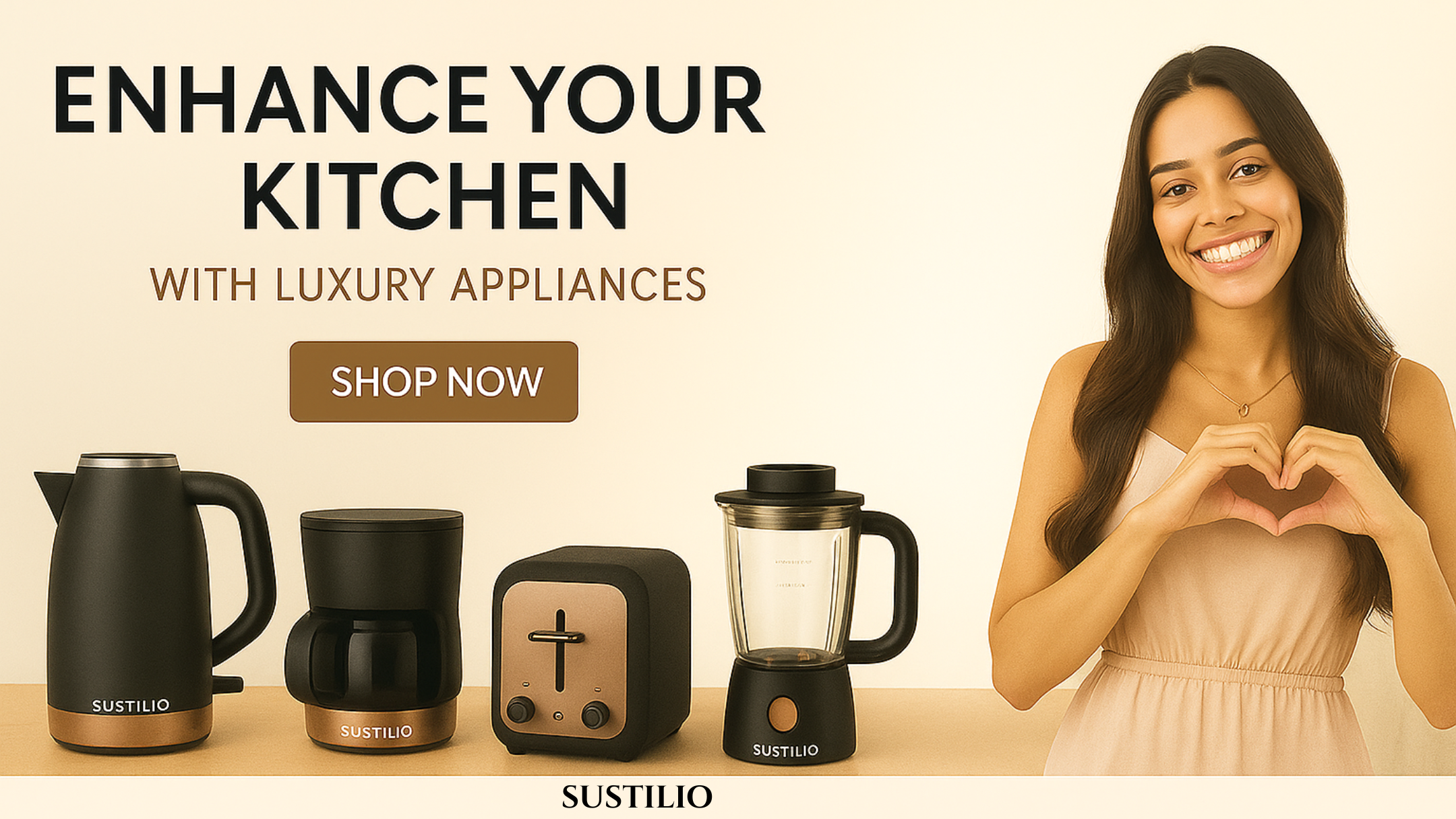 "Elevate Everyday Living" is not just our motto — it’s the essence of SUSTILIO. We create home and kitchen essentials that are as functional as they are beautiful, blending timeless design with lasting quality. Our collections cater to diverse styles — from Modern Minimalist to Contemporary Luxe — ensuring every home finds its perfect match.